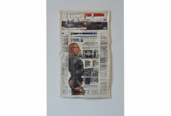 Apontando para outro diálogo possível, passamos a conversar com o trabalho textual que Helô Sanvoy se propõe a realizar. Helô desenha ao exercitar as ações de ler, marcar, apontar, riscar, enfatizar partes de livros, jornais e revistas, produzindo ora sobreposições de camadas translúcidas dos papéis, ora a falta de letras e palavras onde antes efetuaria a sua leitura. Também é possível que a leitura seja ativada em uma imagem já impressa no papel jornal deixada pelo artista. Ao selecionar folhas de jornais impressos, sua estratégia permite transitar no limite do texto, reorganizar suas lacunas, elementos dados a serem vistos e lidos ou mesmo o impedimento dessa leitura habitual, já que, no processo de construção da imagem, o artista veda ao espectador a possibilidade de chegar ao “texto original”. Nestas páginas duplas e impressas de um jornal cotidiano, o que passamos, então, a tentar ler, mesmo que em sua impossibilidade de leitura total, são os próprios movimentos dos desenhos impressos, ou recortados da superfície do papel.